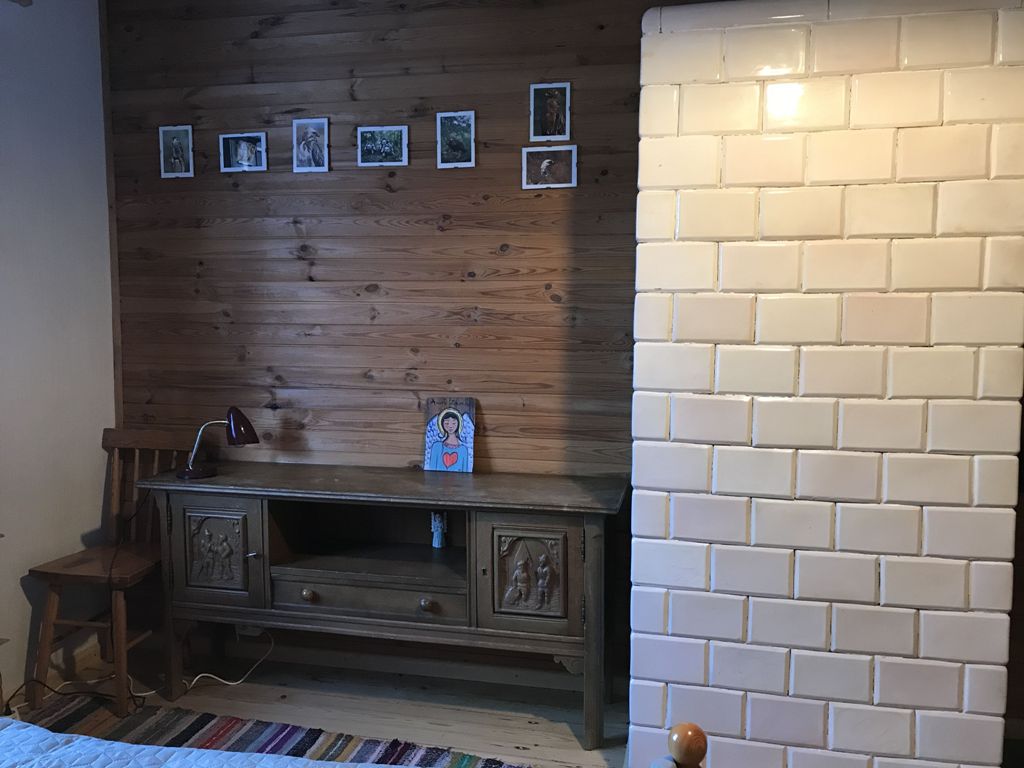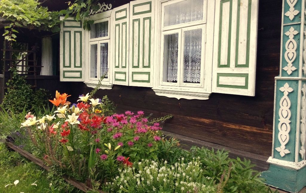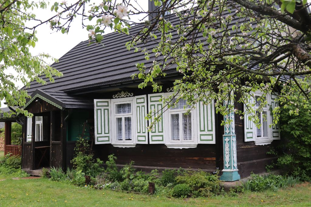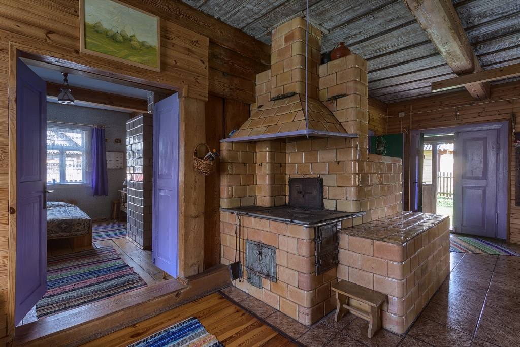 To ozdobiony w sposób charakterystyczny dla Podlasia dom z sosnowych bali, którego sercem jest tradycyjny (i wciąż działający!) piec chlebowy – jego dobrą energię poczujesz od progu.