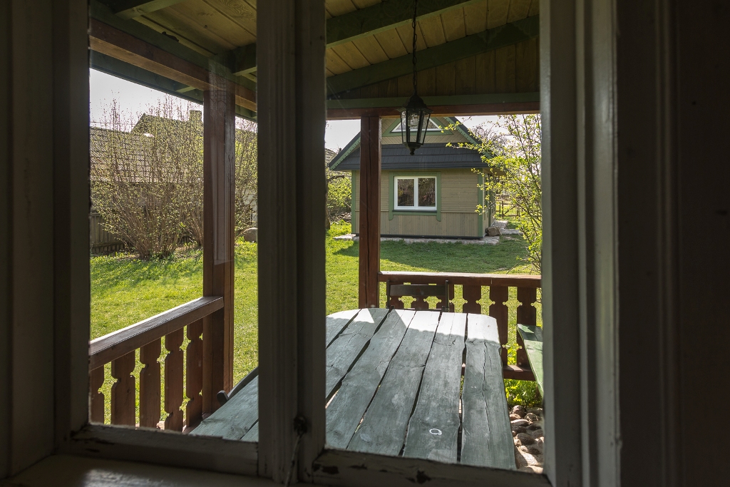 Przy domu znajduje się zadaszony taras z dużym drewnianym stołem, gdzie latem można wypoczywać i biesiadować.
