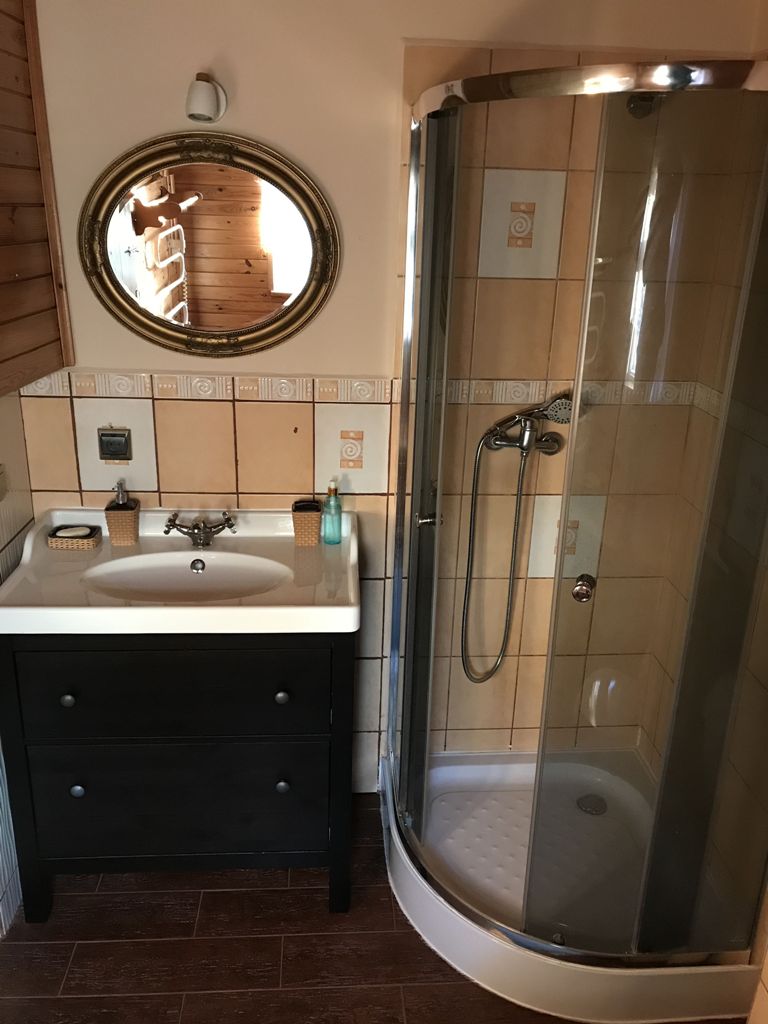 - przytulna łazienka z podgrzewaną podłogą, umywalką, kabiną prysznicową i WC.