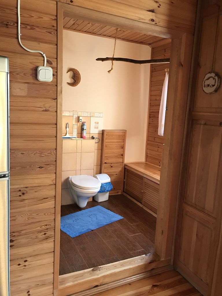 - w pełni wyposażona kuchnia (lodówka, kuchenka gazowa, zmywarka, naczynia itp.) z tradycyjnym kaflowym piecem i dodatkowym łóżkiem oraz szelbągiem („spanie na szlabanie”),
